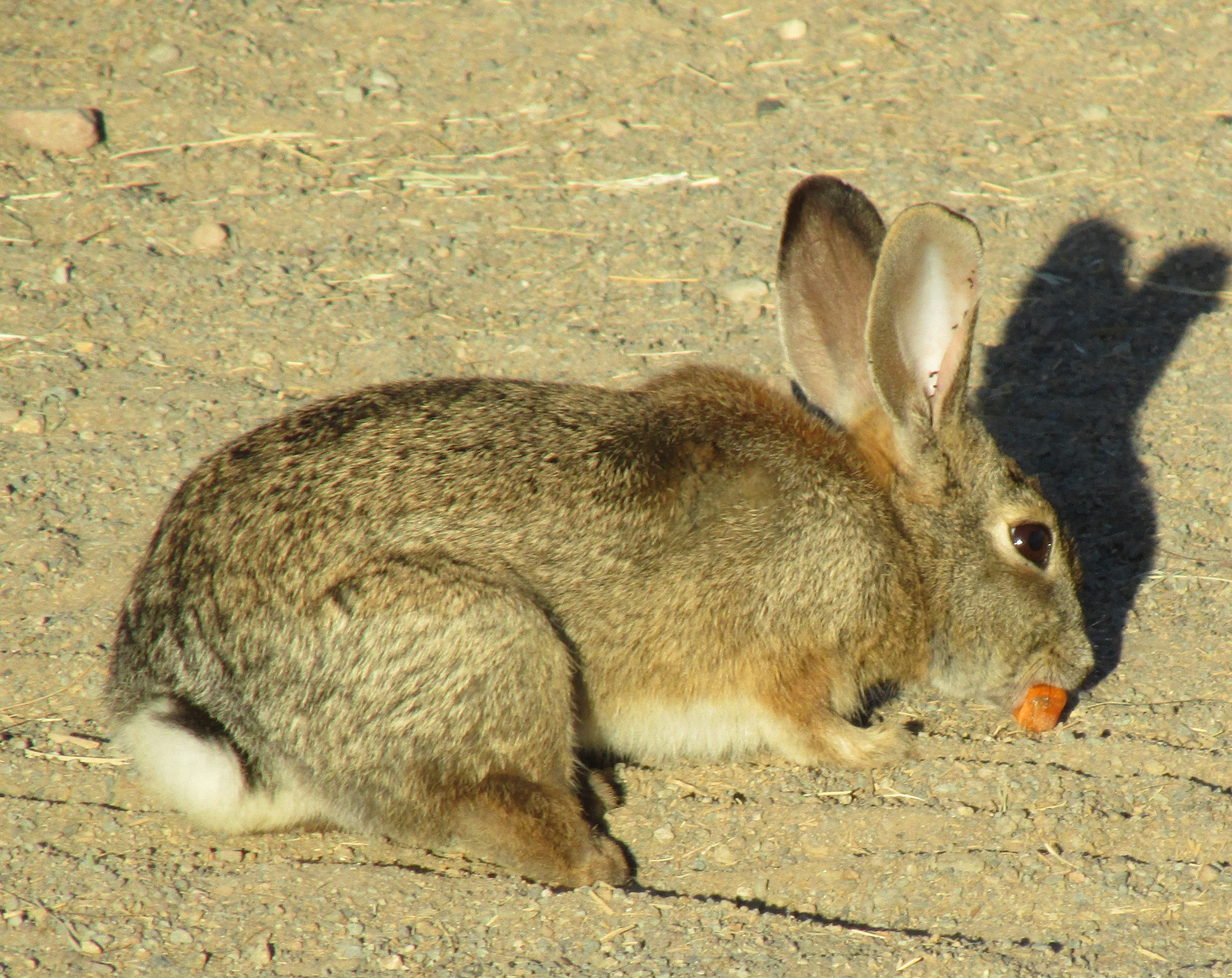 Chop Stix is my all time favorite! She is a wild bunny born in the Spring of 2013. She has a broken hind leg, but that doesn’t slow her down. Bunnies cover a bigger territory than squirrels, so training is tough, but Chop Stix will come out at the sound of my voice when she is in the area. She will stay close and eat the carrots on the ground around me. I am happy to say that Chop Stix found herself a nice boyfriend bunny and is bringing along some baby Chop Stix. She disappears for a bit and will reappear when the babies are older. That is, if Bobbi doesn’t find her first.