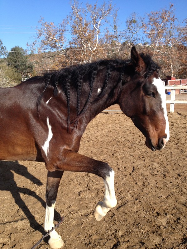 Once the Spanish walk is confirmed, you can add it to your horse’s ground driving and under saddle repertoire. Since Wiley isn’t saddle broke, I am just adding it to his ground driving.