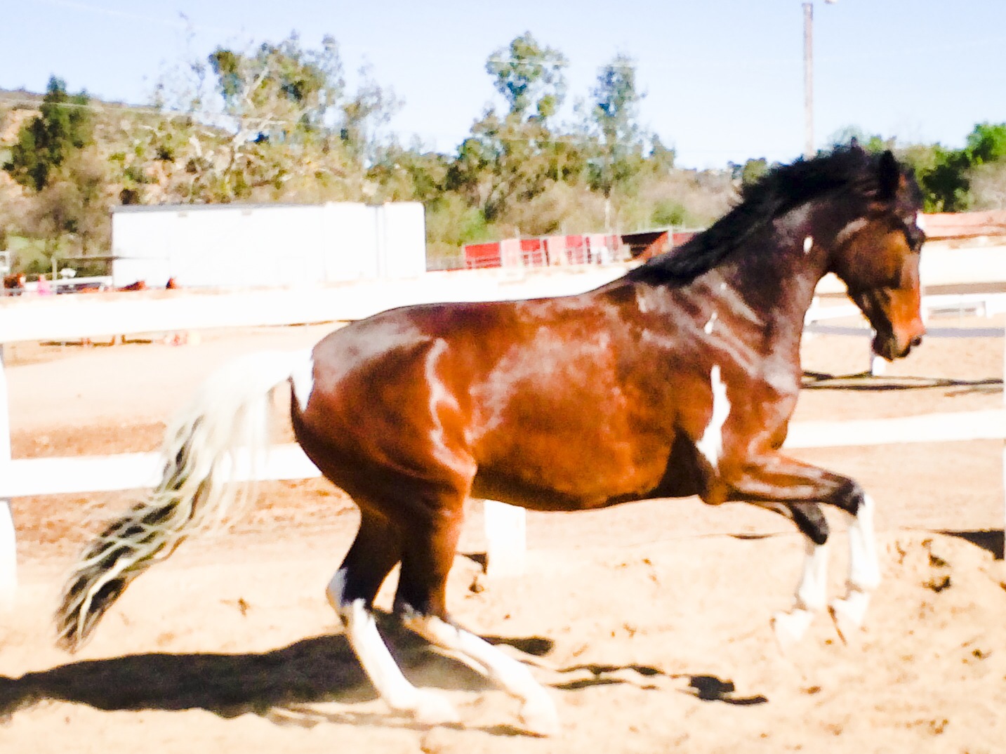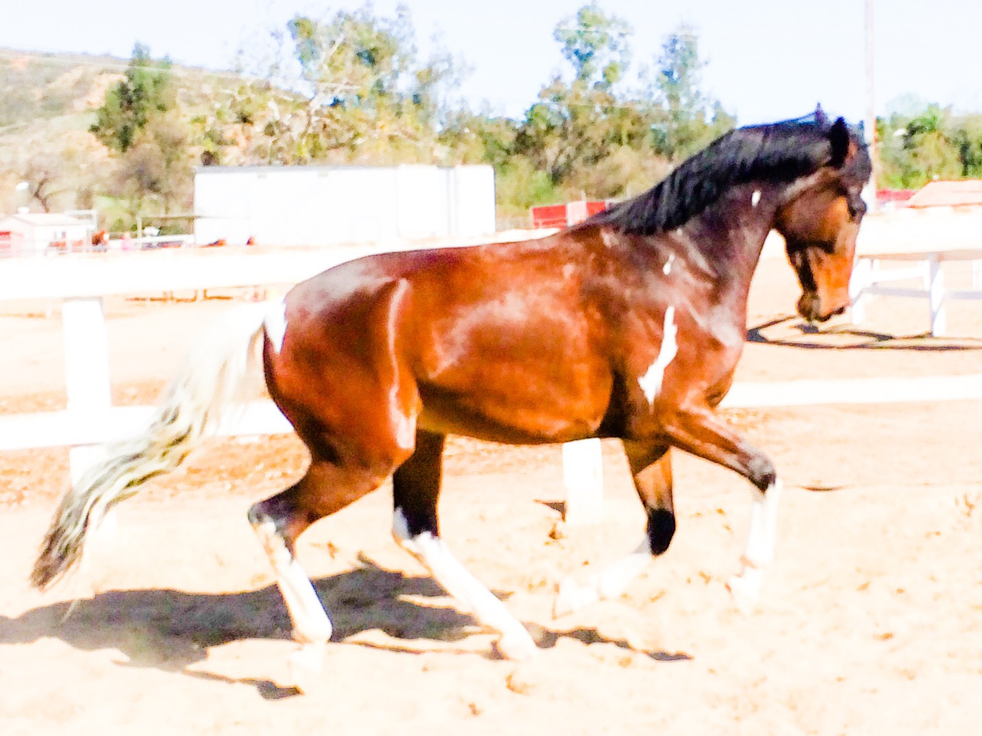 Dino has graduated from Spanish Trot at Liberty to attempting Spanish Trot under saddle, and he is even trying a few passage steps! If you are wondering how a horse with 5 months under saddle can begin thinking about passage, remember, I started this training a year ago. Until now, all of the Spanish Walk/Trot/Passage training was performed without a rider. It took months of slow work to get the first few steps under saddle. Even now, it will take much longer to shape this into Dino’s final passage. He still needs to learn to take even steps, collect and shift more weight to the hind end, but you can already see that his passage will have power and impulsion. The collection and sitting will come slowly as Dino gets stronger. For now, Dino does mostly long and low work to develop his back muscles. We usually only school at most 4 steps in a row of Spanish trot/passage. I just threw a few more in for the video, but clearly he isn’t ready for more than a few steps.